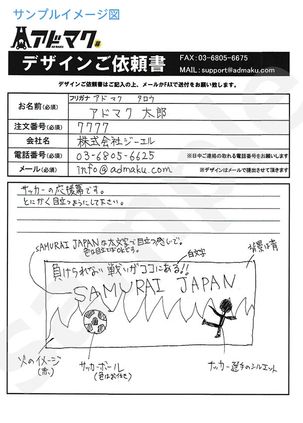 無料デザインは一からデザインをご提案するサービスではありません。あくまでお客様のイメージを形にするサービスなので、デザイン依頼書に色・文章・フォントなど出来るだけ細かく指示をお願いします。