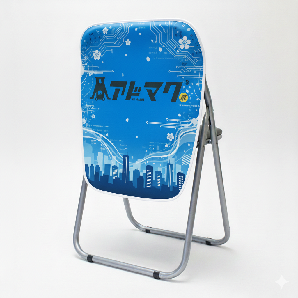 背もたれ部分に社名やロゴマーク・商品名を印刷することでブースの前を通る人へアピールができます。