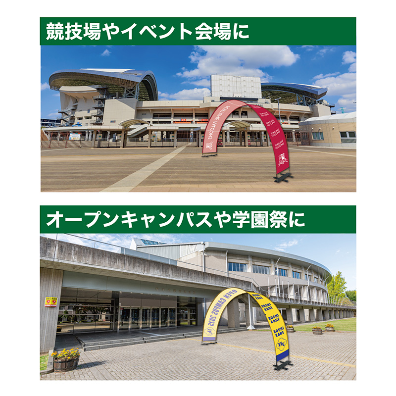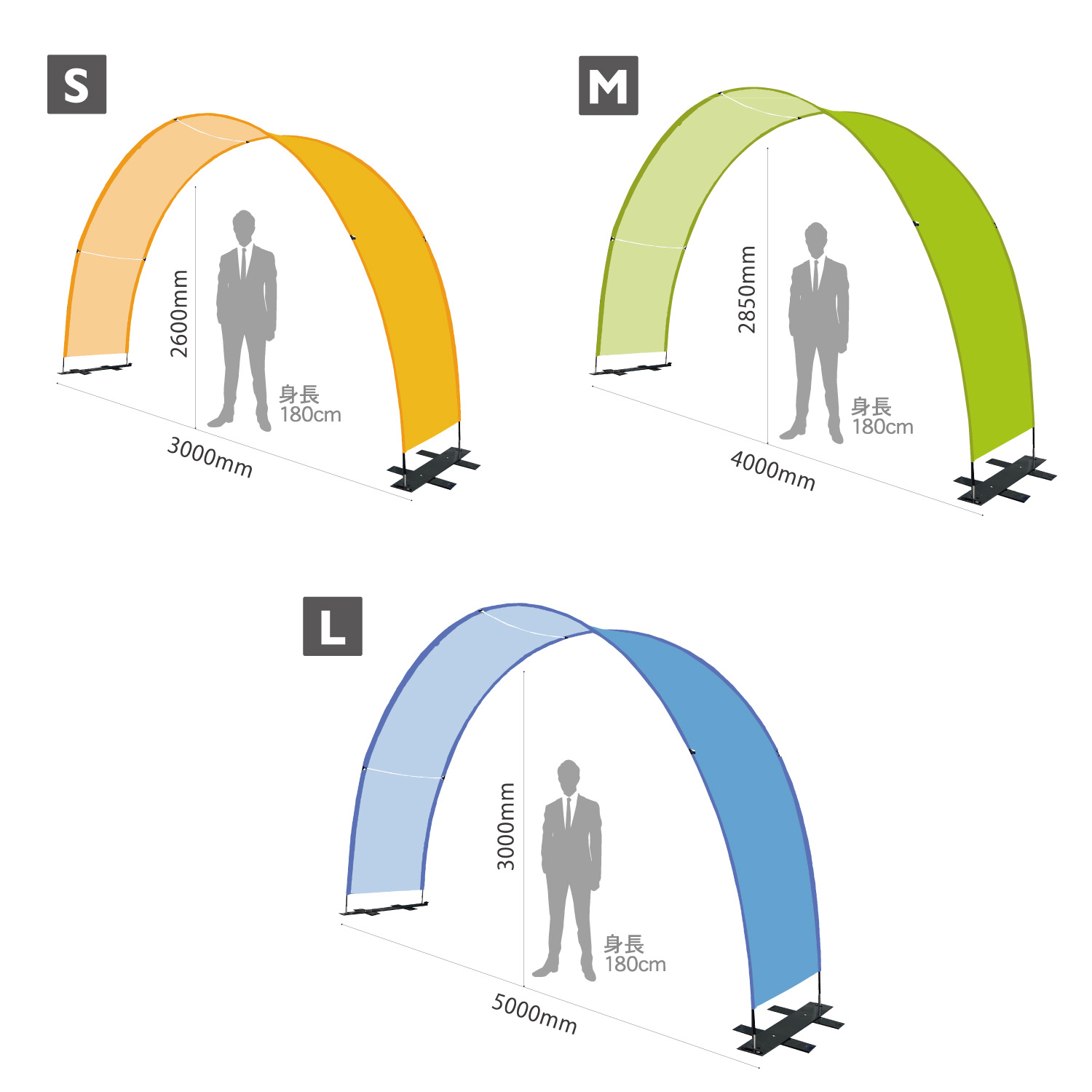 虹のような立体アーチ型デザインで、くぐるだけで気分が上がる、楽しい演出が可能。 来場者のワクワク感を高め、イベントの世界観づくりに貢献します。
