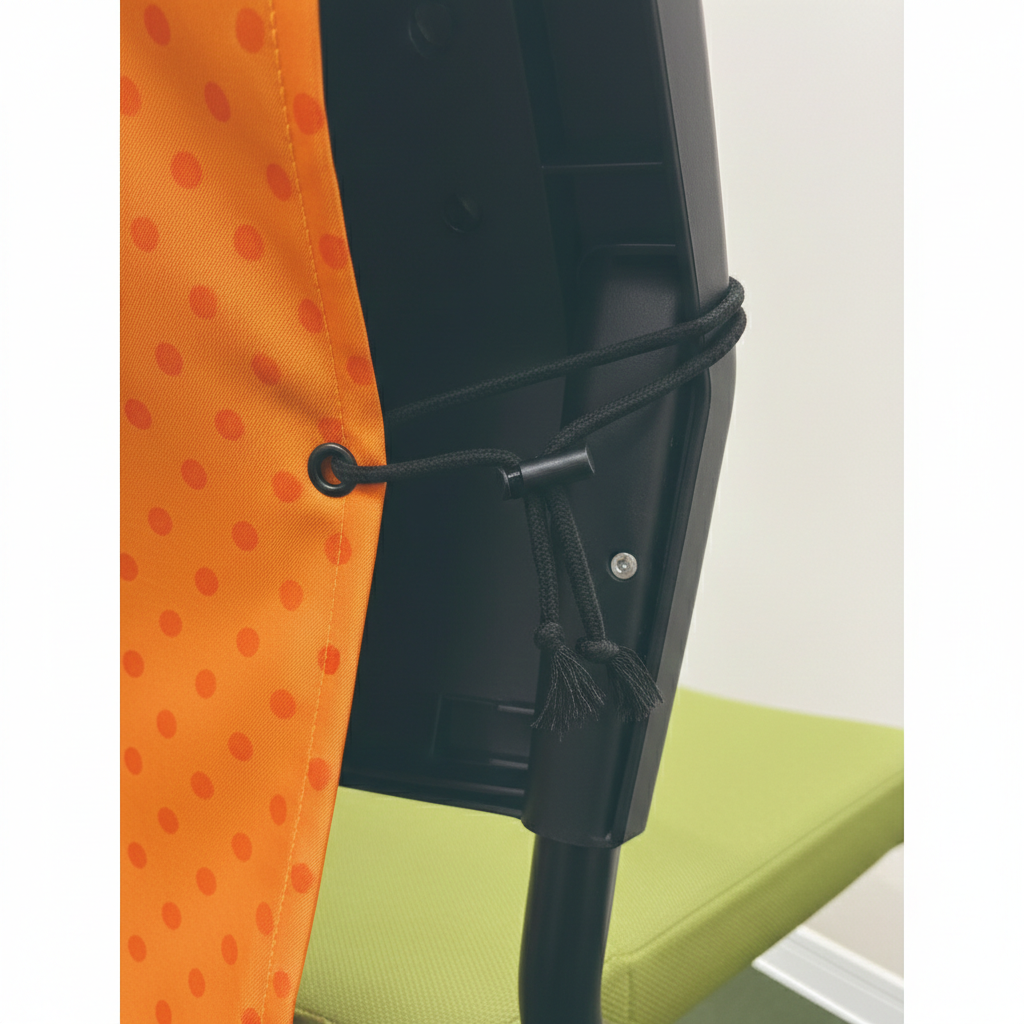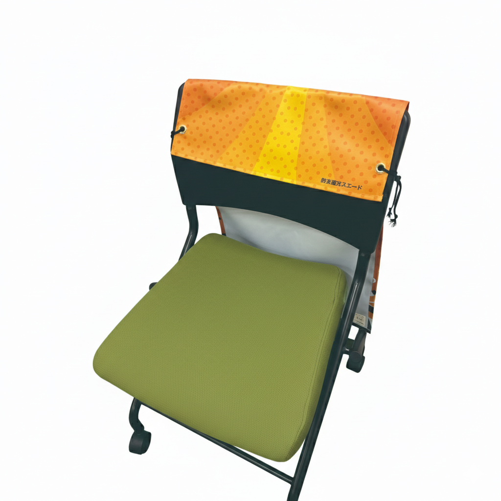 国内製作のアジャスター付き椅子カバーです! 生地は高級感のある遮光スエードを使用し、しっかりとした作りで安心感があります。 アジャスターが付いているのでズレないようにしっかりと設置可能です。 ブースが華やかな雰囲気になる、展示会や説明会では欠かせない装飾ツールです。 背もたれ部分に社名やロゴマーク・商品名を印刷することでブースの前を通る人へアピールができます。